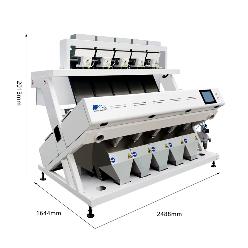 Wide chute design with special anodizing treatment process secures high flow capacity and stability of material flow. primary, secondary, tertiary, quadruple sorting process mode design available